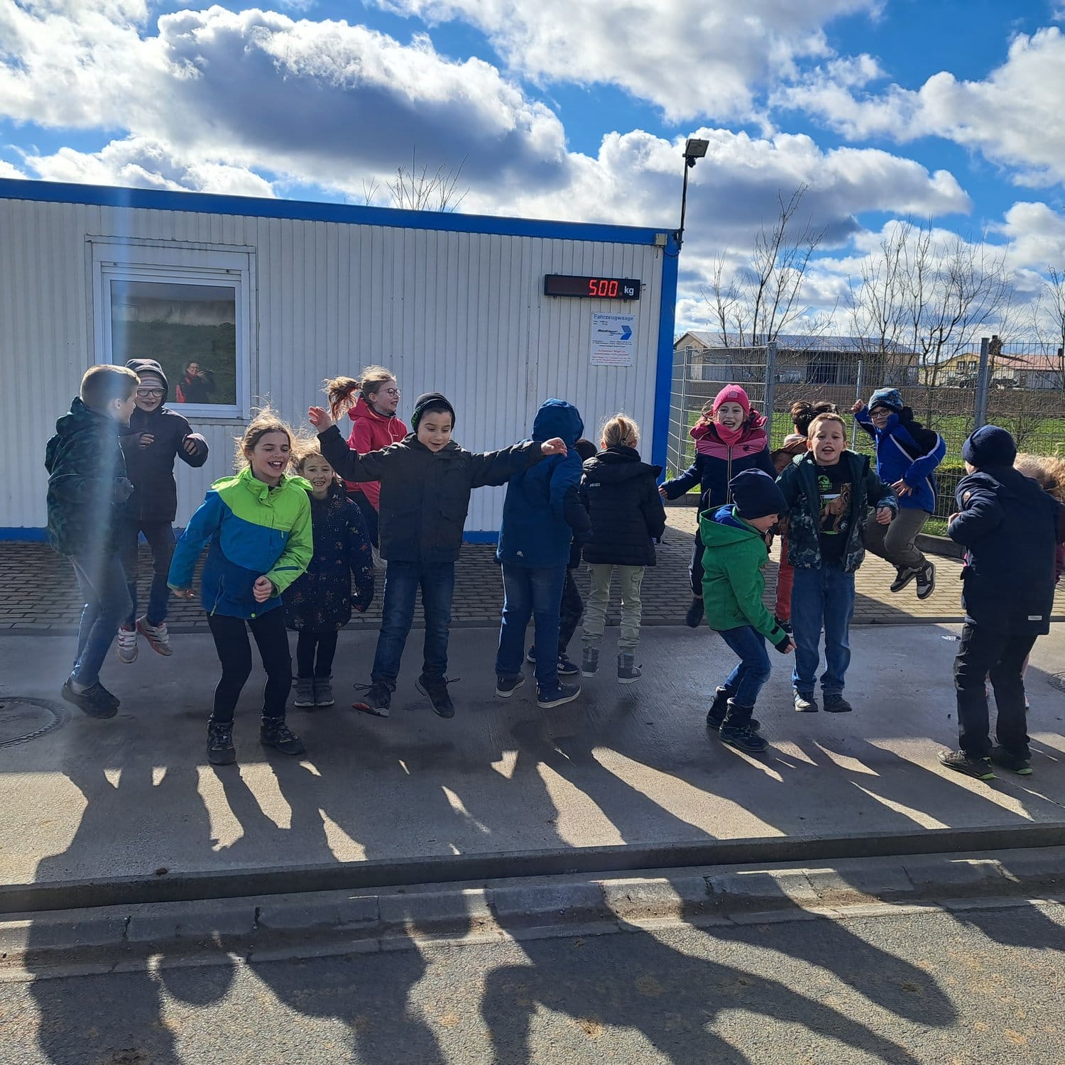Magdalenas Onkel Stefan hat uns die Biogasanlage in Gelchsheim gezeigt. Er hat uns zum Beispiel den Fermentierer, den Nachgärer und das Gärproduktlager erklärt und gezeigt. In der Biogasanlage war es sehr laut und es hat streng gerochen. Stefan hat uns gesagt, dass sie in großen Mengen Silomais lagern, welcher alle 30 Minuten über ein Rohr in den Fermentierer gelangt.