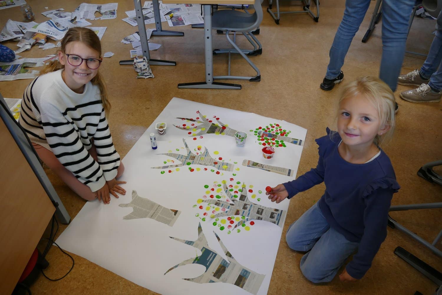Der Elternbeirat versorgte die Besucher mit Würstchen, Getränken und köstlichem Kuchen. Mehrere Eltern hatten sich auch bereit erklärt, bei den Aktionsständen zu helfen. Vielen Dank an Frau Stüber, Frau Grimm und Frau Chciuk. So konnten sich die Kinder über ein abwechslungsreiches Angebot freuen und machten sich mit Feuereifer ans Füllen ihrer Laufzettel. Zum Basteln gab es Holzigel mit Stacheln aus echten Nägeln, Drachen aus Eisstäbchen, Origami-Kürbisse, Windräder, Blättergeister und Klorollen-Eulen. Mit Korken wurden farbenfrohe Herbstbäume und Pilze gedruckt. Auf dem Pausenhof wartete eine Apfelsortenverkostung, bei der die Schüler ihr Geschmacksempfinden für „Süßes“ testen konnten. Ein Riesenmemory erforderte ein gutes Gedächtnis und viel Spaß brachten auch die lustigen Staffelläufe „Tischlein deck dich“, Kartoffellauf sowie Sackhüpfen.