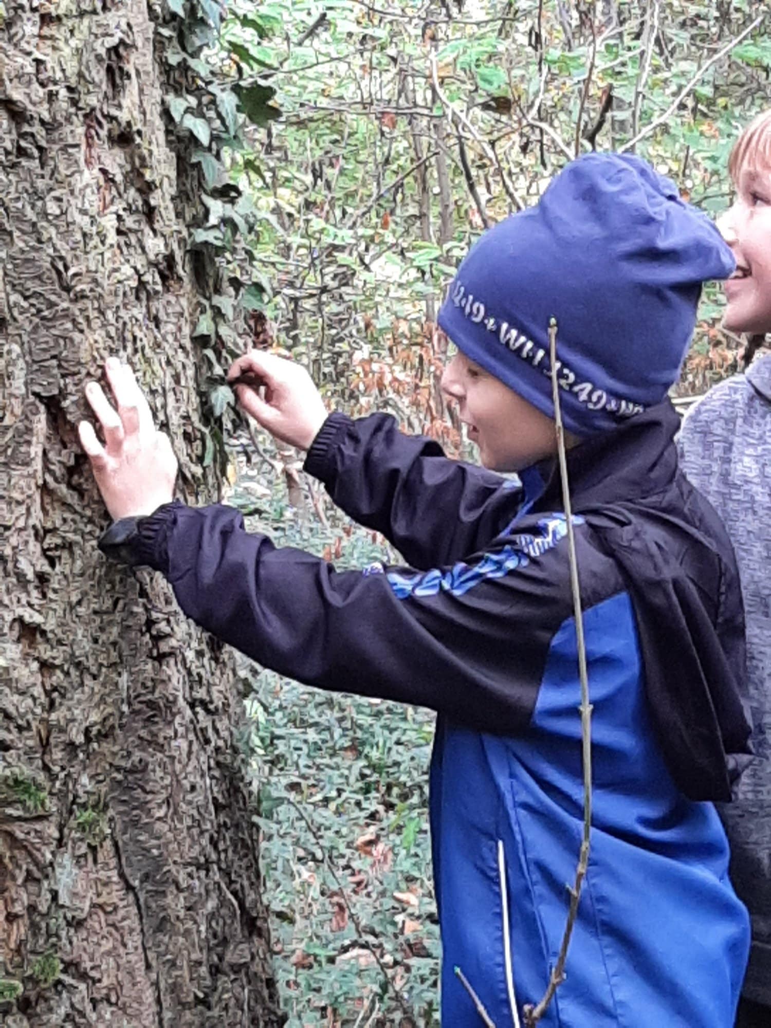 Die dritte Klasse ging im Rahmen der Projektwoche zur Gesundheit und Nachhaltigkeit vom 17. bis 21. Oktober mehrmals zum "Waldbaden." „Was tut der Wald für meine Gesundheit?“ war die Frage. Übungen zur Vertiefung der Atmung und Körpererfahrung sowie vielfältige Sinneseindrücke ließen den Wald auf neue Weise erleben. Beeindruckt waren die Kinder dabei zum Beispiel davon, dass ein achtsamer Aufenthalt im Wald den Herzschlag beruhigt, was sie auch überprüfen konnten. Wertvolle Funde, vom Schneckenhaus bis zur „Wünschelrute“, führten zu kleinen „Schatzgeschichten“, die fleißig aufgeschrieben wurden. Und wie der Wald den Sinn für Schönheit schult, bewiesen die Schüler mit dem Vorschlag, das abschließende, gesunde Frühstücksbuffet der Schule mit leuchtenden Ahornblättern zu schmücken.