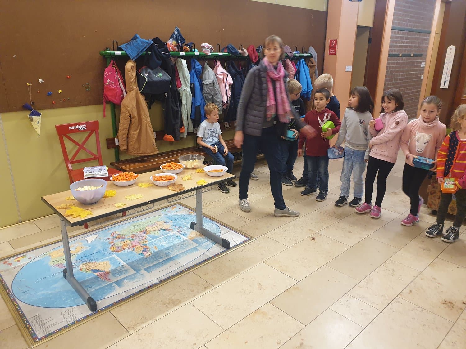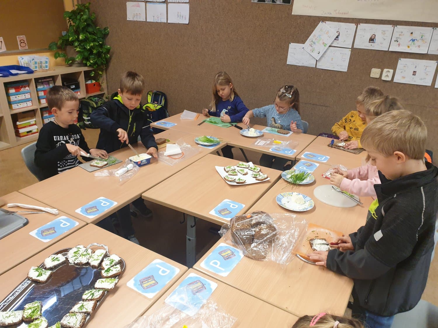 Die Klassen 1 und 2 bereiteten weitere Leckereien für das Buffet vor.