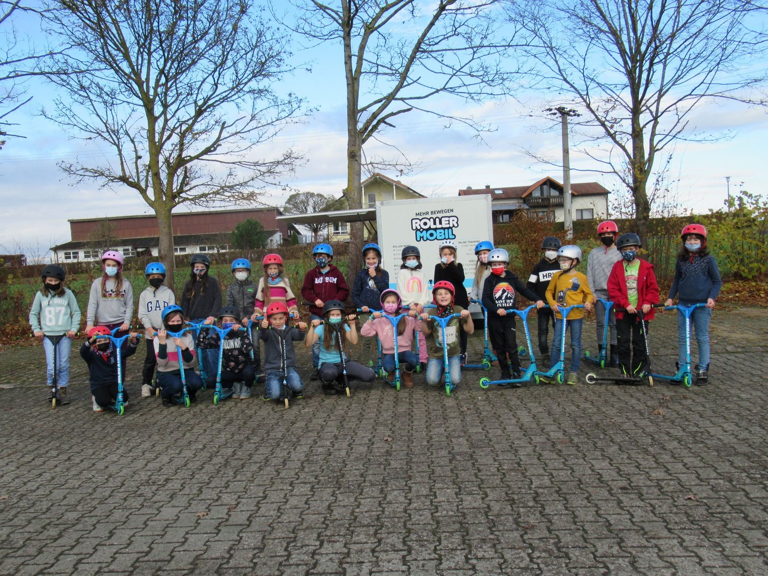Drei Tage durften wir das Roller Fit-Mobil der ADAC-Stiftung an unserer Schule nutzen. Das Rollermobil ist ein Autoanhänger, der mit einem Klassensatz Tretrollern, Helmen, Trainingshilfen und Lernmedien ausgestattet ist.
