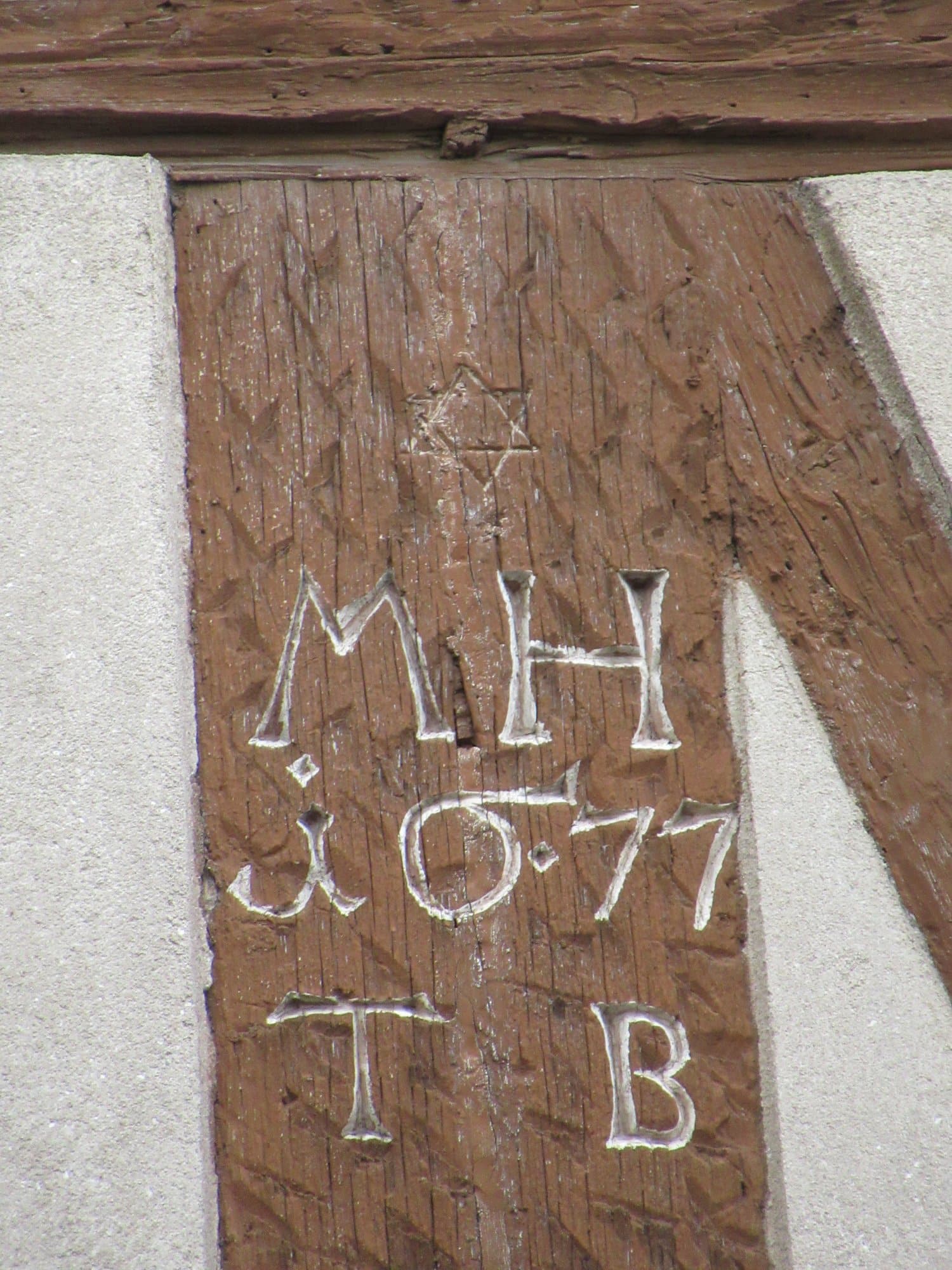 die Spuren der Befestigung einer Mesusa (Kapsel mit Texten aus der Tora, der heiligen Schrift der Juden) am Türpfosten der ehemaligen Synagoge,